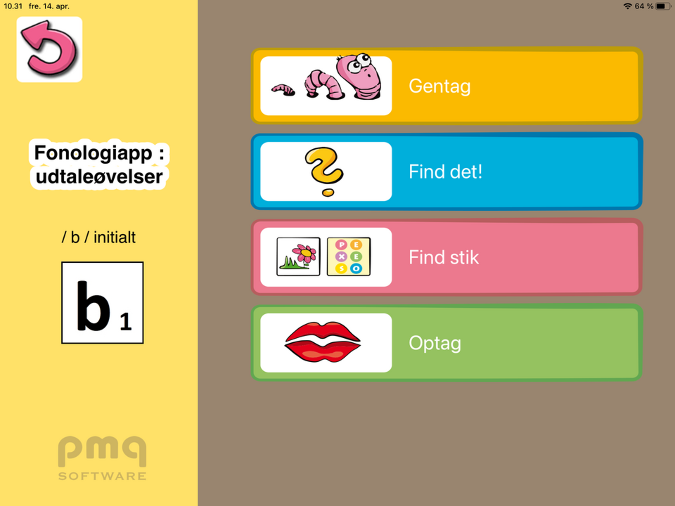 - Fonologiappen giver mulighed for at øve sproglyde i forskellige positioner i ord, dvs. i starten, midten og i slutningen af ord.