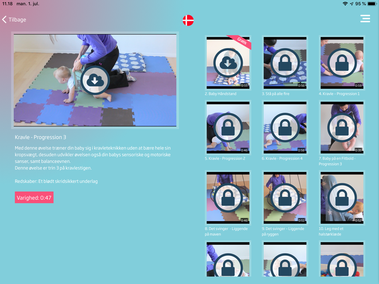 - Appen giver dig øvelser til at træne dit barns grovmotorik