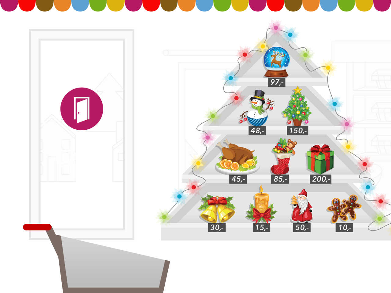 - Fylder du din kurv og går til kassen hvor varerne lægges op på båndet. For hvert produkt viser kasseapparatet prisen på kvitteringen og hvad den samlede pris er.