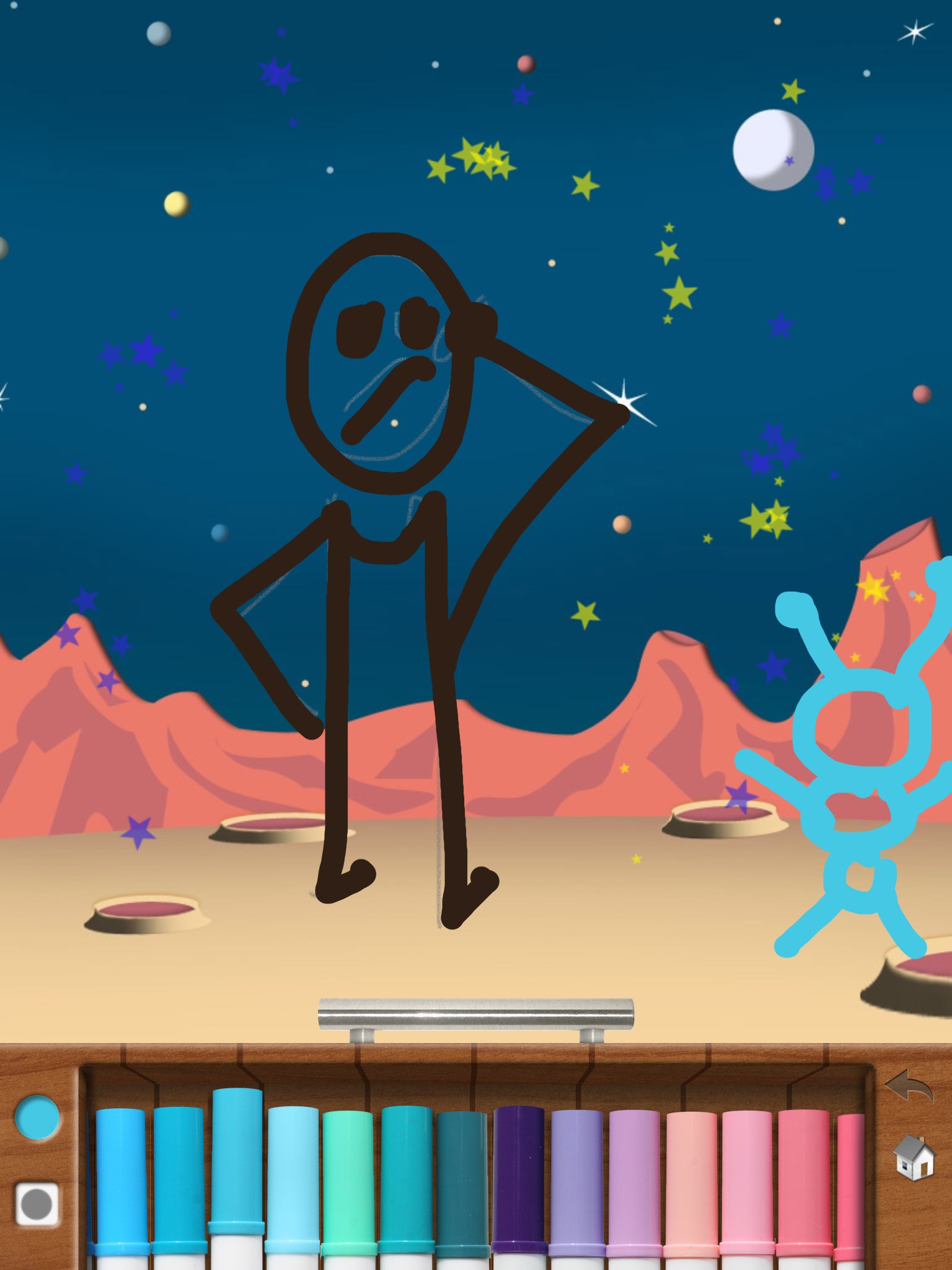 Drawing Pad giver mulighed for at producere sit eget kunstværk, men også et fælleskunstværk. Man kan begynde på et tomt lærred, eller man kan arbejde med udgangspunkt i et foto fra iPadens kamerarulle.