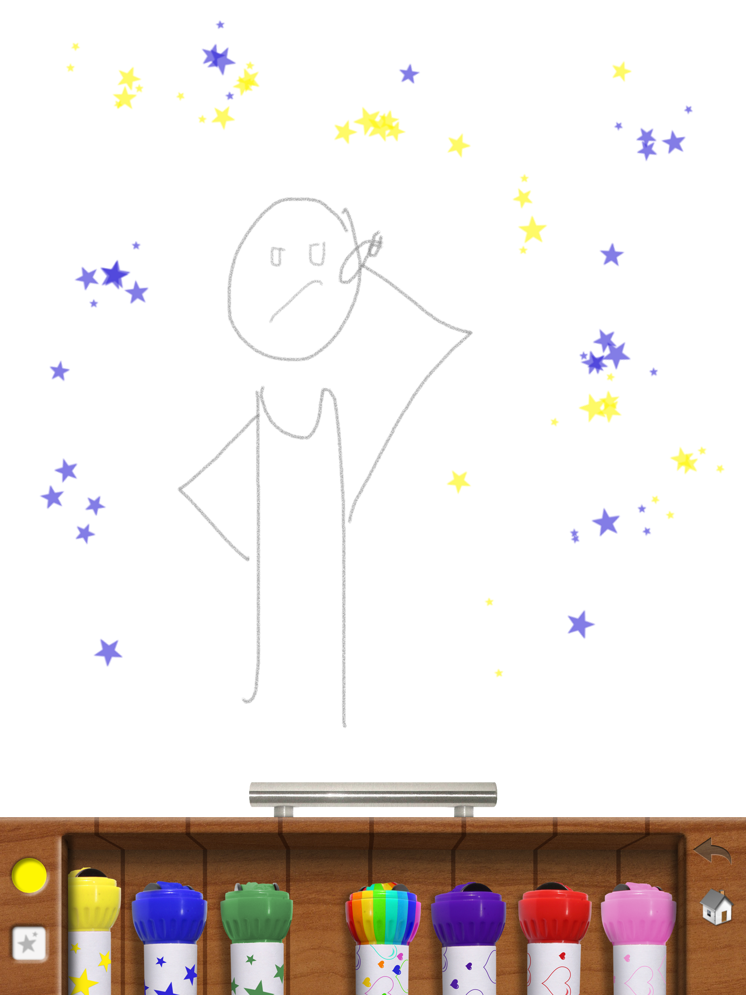 Drawing Pad giver mulighed for at producere sit eget kunstværk, men også et fælleskunstværk. Man kan begynde på et tomt lærred, eller man kan arbejde med udgangspunkt i et foto fra iPadens kamerarulle.